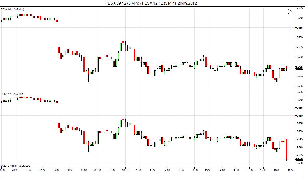 Lo que quiero decir es que el graf del fesx con vto09-12 y el graf del fesx con vto 12-12 deberían ser idénticos en estructura pero no en el precio; si te fijas en la primera imagen que puse; la estructura de precios es diferente y ESE ES EL PROBLEMA. Ninja al pasarlo automáticamente lo que hace es preservar la estructura de precios pero con diferente precio