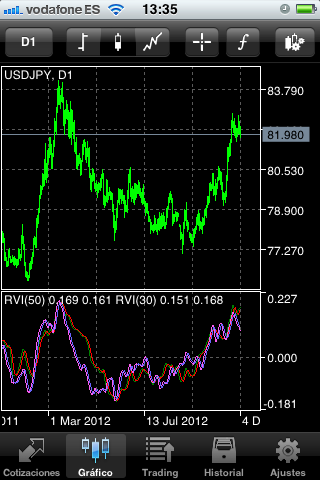 No no,cuelgo una foto para que lo veas. Son dos indicadores iguales pero con distintos periodos (RVI 30 y 50,es un ejemplo):
