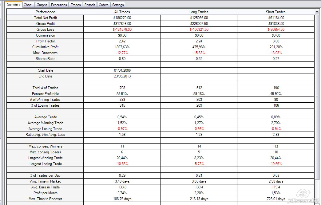 La ayuda que pido no es para mejorar la estrategia sino sobre la interpretación de sus resultados, cosas como que si hace pocos trades, que si el sharpe ratio no es adecuado, que si le puedes hacer tal test de esfuerzo, etc