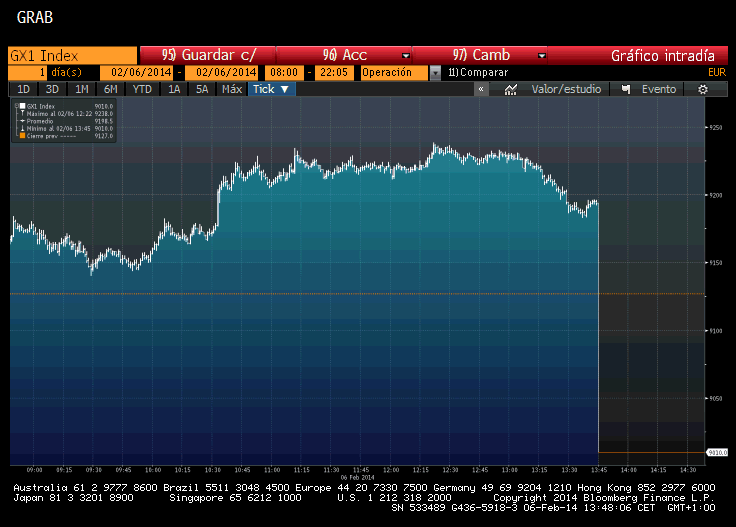 El ECB era a las 13:45 no a las 13:30. La caída fue justamente a las 13:45. No se que gráfico estas viendo, unos mensajes mas arriba tienes uno de ticks, en el que se ve la caída de 200 puntos en 1 segundo.