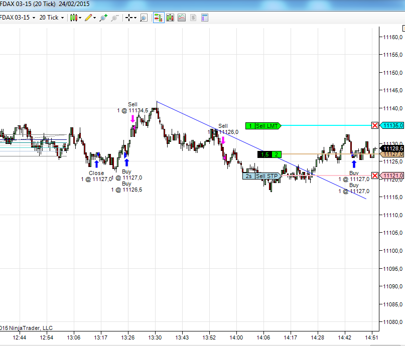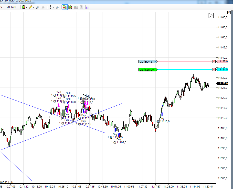 Quizá un gráfico de 5min, de 15min te ayudaría o te complementaría en tu operativa. Súmale el volumen, un stochástico, unas bollinger... Sobre lo que te ha comentado Xtrader; lleva toda la razón, pero realizarlo correctamente en un gráfico de ticks es una faena. Ojito con eso. En todo caso, suerte! Nos vas informando!