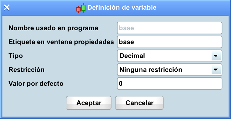 He ojeado el manual y no dice nada de que se puedan crear funciones o rutinas propias, pero si puedes crear indicadores, así que a lo mejor puedes crear un indicador con dos parámetros: base y exponente y que te devuelva un valor. Así haces las cuentas como quieres en un sólo sitio y puedes reutilizarlo cuando quieras sin tocar nada más... Es una teoría nada más...Rafa7 escribió: La idea que das es interesante en algunos casos concretos, pero, en genérico no lo veo adecuado.