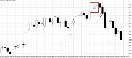 2.3.- Apertura de la 2ª y 3ª vela por debajo del cierre anterior.