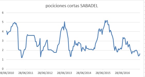 Si hiciecemos una analisis relativa de pociciones cortas con otro banco de tamanho similar (no podemos contra-restar com bancos de tamanho como Santander o BBVA porque la analisis seria muy poluida) vemos que hay divergencia veamos la comparacion con el banco SABADEL (em bajo) vemos una gran divergencia de pociciones cortas lo que indicava que algo gordo se estava a acercar muy deprissa