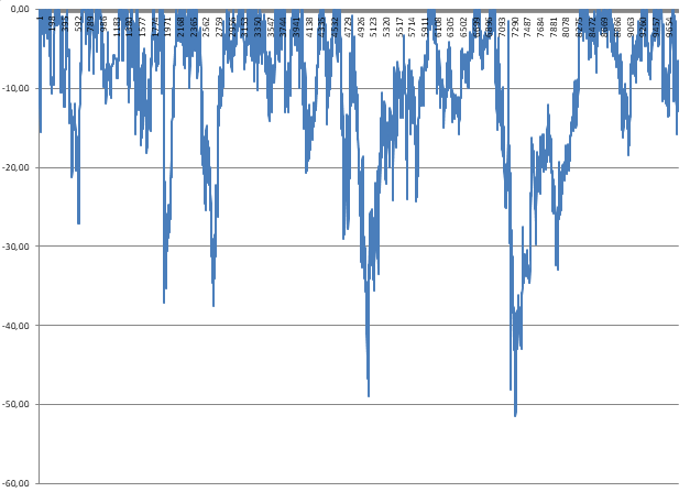 Creo que cuando vemos unos cuantos datos, vamos a terminar concluyendo que se lo ha podido permitir, pero no se puede decir que BRK haya tenido DDs bajos: dos veces, del treinta y muchos por ciento, y otras dos de casi el 50 y algo más del 50%, concretamente, su