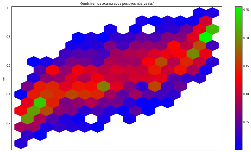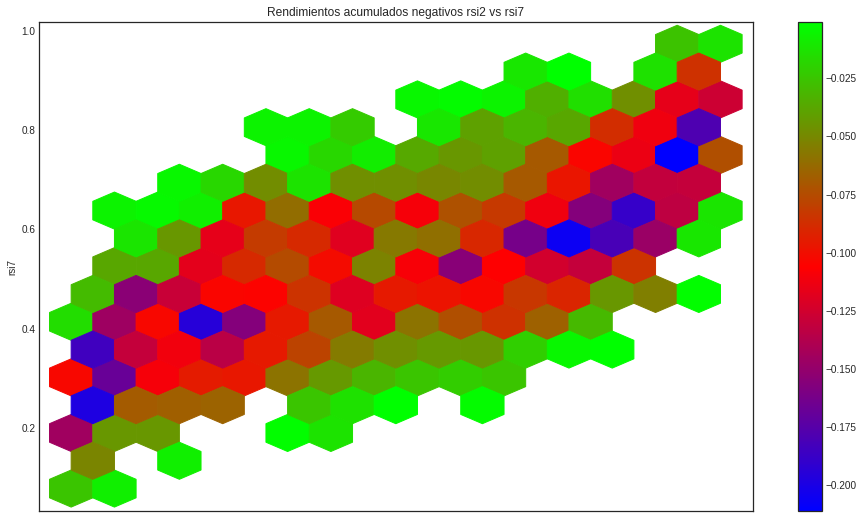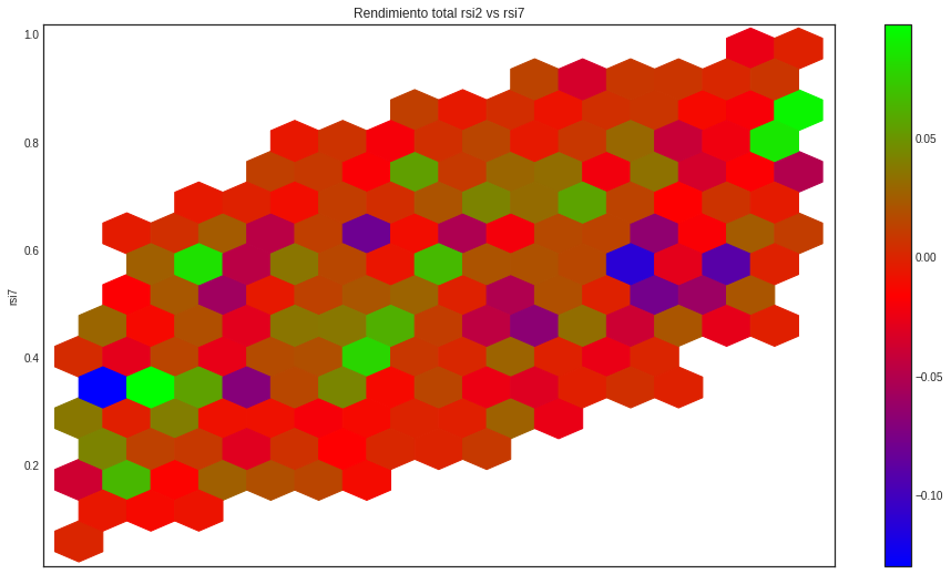 Podemos ver que hay dos zonas con rsi's bajos y con rsi's altos que acumulan los mayores rendiemientos.