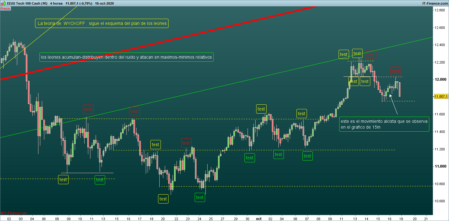 Eso que dices se lo comento yo a todos los amigos o conocidos que siempre se me acercan atraídos por mi trabajo, se creen que ganar dinero haciendo en trading es pan comido cuando uno tiene unos conocimientos, siempre digo lo mismo, ETF NASDAQ 100 COMPRAR CADA VEZ QUE HAY UN 15%-20% DE BAJADA DESDE MAXIMOS, si no necesitas el dinero en 5 años, el resto olvídate zapatero a sus zapatos.Rango Starr escribió: 19 Oct 2020 07:40Hola,landorra escribió: 16 Oct 2020 11:36 Como siempre, he visto en Youtube (garantía total), el video de un paquistaní (garantía contrastada) que abre centenares de operaciones en el gráfico de 5 minutos del EURUSD, tanto compras como ventas. Aparentemente lo hace a la buena de dios, pero el tio le mete un target de pasta diario a conseguir y al final, lo consigue para empezar de nuevo con lo mismo al día siguiente.