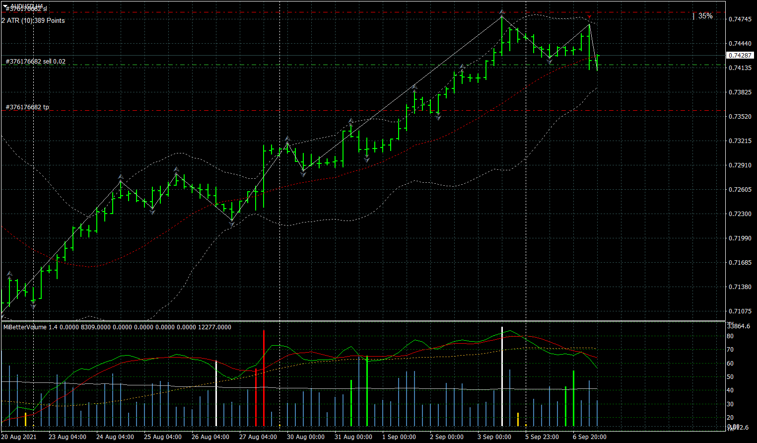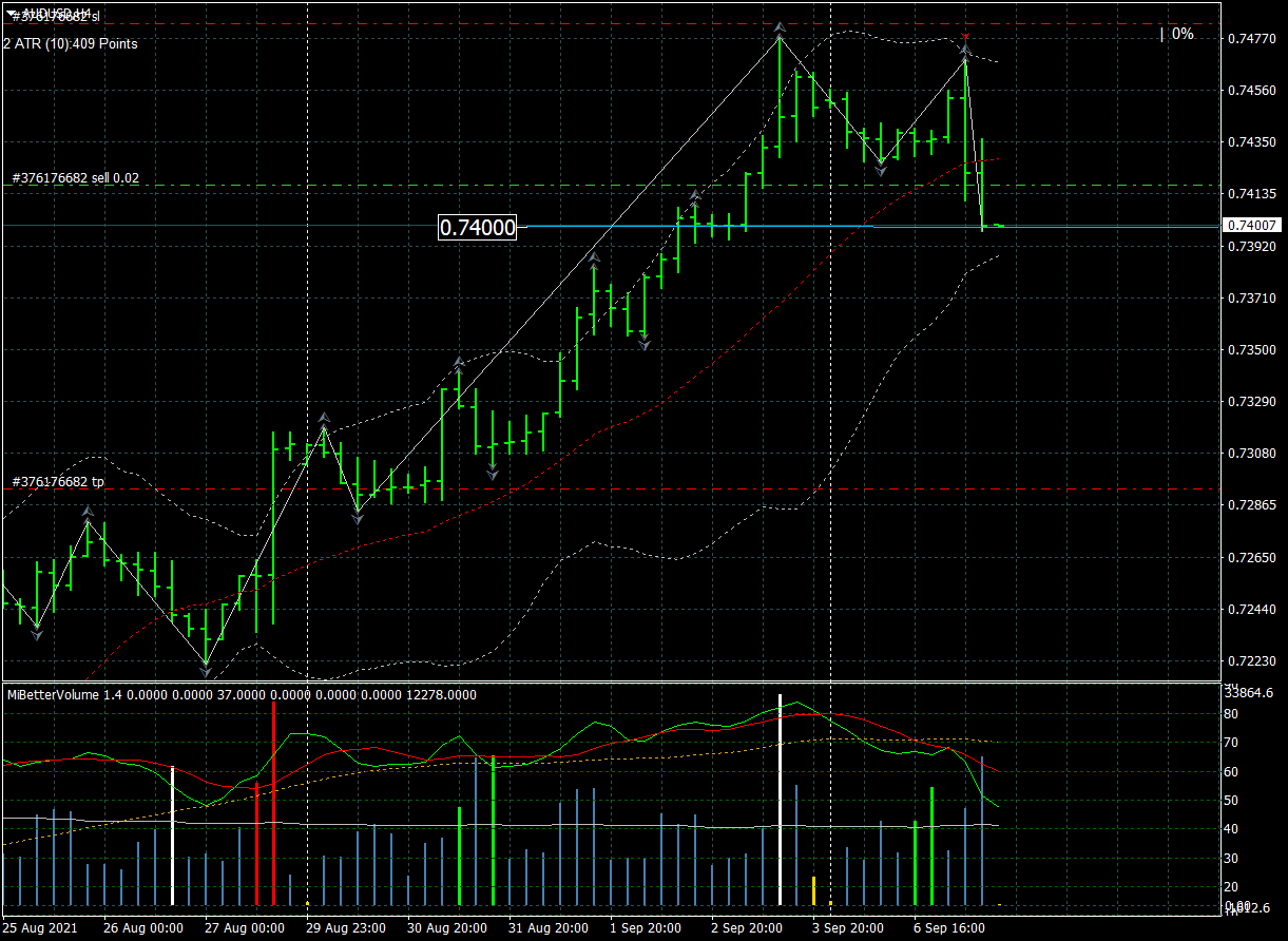 A última hora de ayer me abrió una venta pero en el máximo de hoy me la ha cerrado por volatilidad contraria....yo creo que efectivamente va a corregir un poco pero no mucho...ojo, al soporte 0.7400.