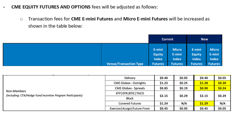 Por si no lo habéis visto, desde hoy día 3 de febrero el CME sube sus comisiones para contratos de futuros sobre índices, micro FX y agrícolas, estos son los nuevos precios: