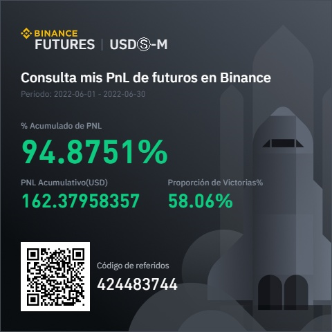 Buenos días, hay un problema con binance , solo da histórico de los últimos 90 días, por tanto a partir de ahora y mientras que dure la cuenta subiré los resultados mensuales. El mes de Junio bueno y la cuenta ya esta en positivo.