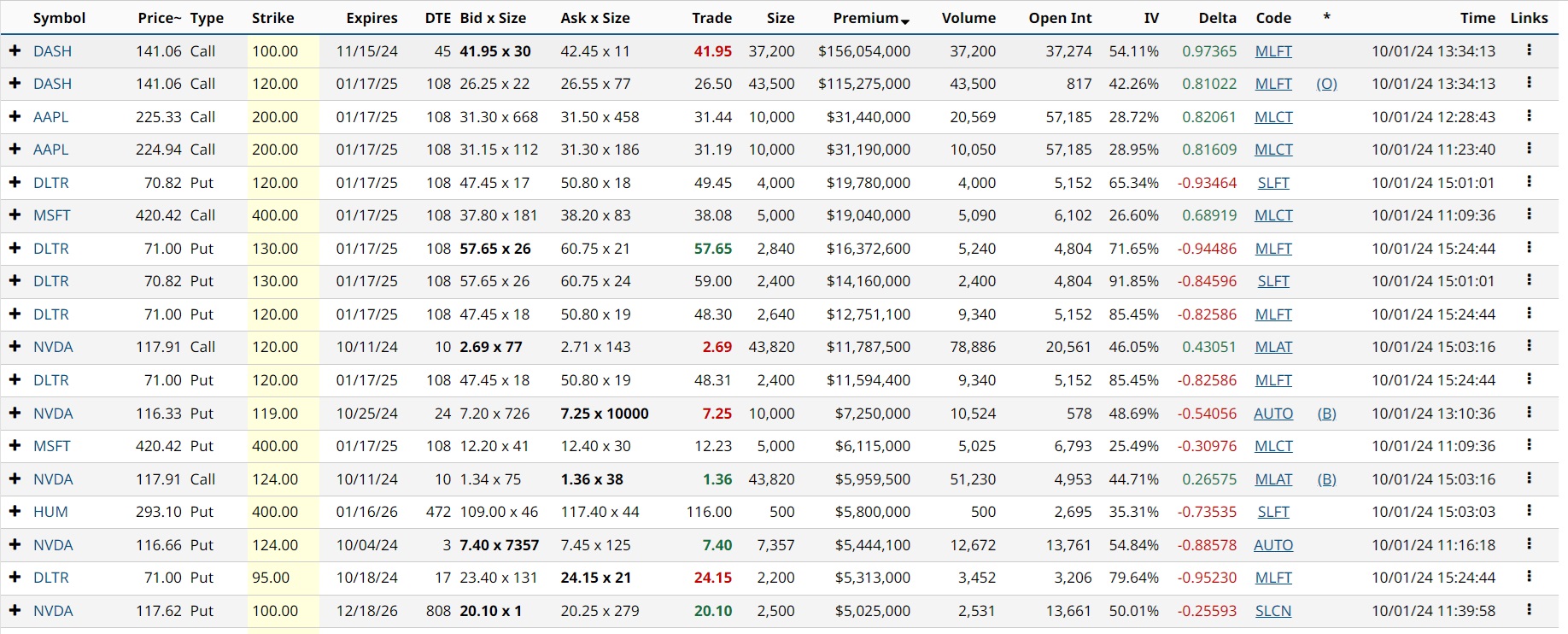 Hola Jairotec, ¿puede ser que lo que buscas sea lo que se conoce como Option Flow? En ese caso, mírate este post que saqué el año pasado, ahí puedes encontrar cositas interesantes: