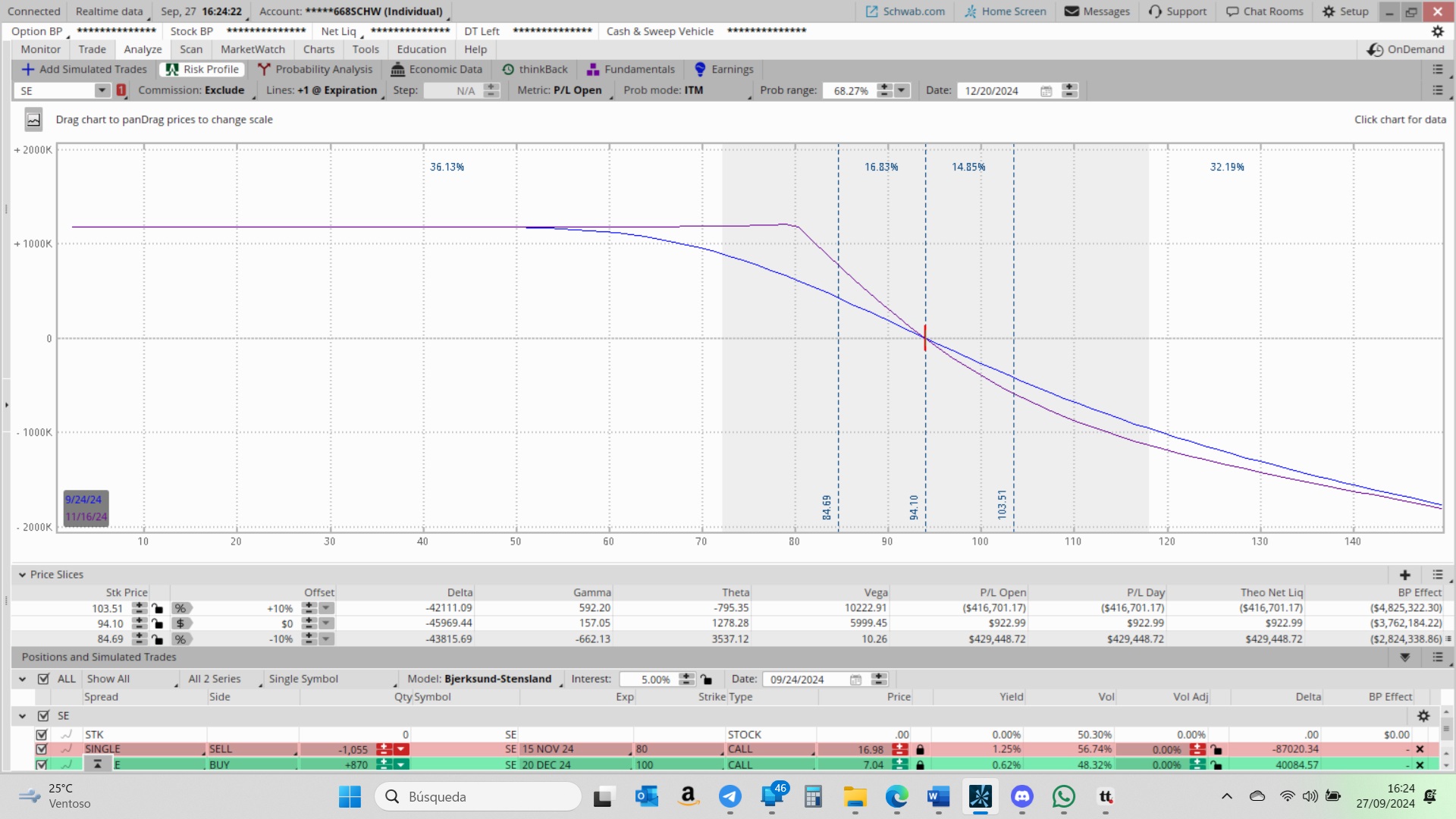 Hoy presenta este aspecto que es el de cierre de ayer. Da la casualidad de que las dos primeras líneas puede ser la aplicación de un calendar. Se ejecutaron al mismo tiempo sobre el mismo subyacente y son una compra y una venta de call con diferente strike y vto. El otro día estuve un rato con esto y encontré la siguiente aplicación. Aunque hay que tener presente que esta operación puede ser parte de una cobertura sobre el subyacente u otras posiciones en opciones. Pero está claro que se puede identificar donde se está concentrando el dinero y la atención de los grandes.