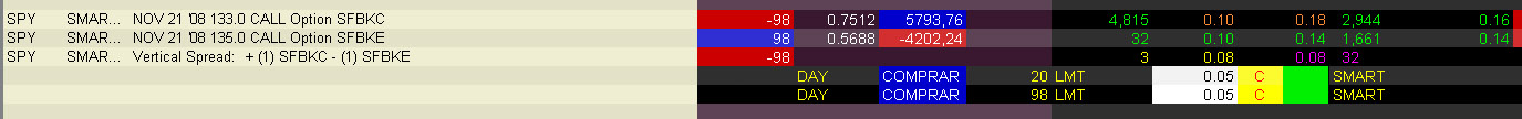 Por cierto, el spread en imagen lo hice con opciones SPY porque cuando lo crucé, el megamercado superelectrónico Globex se quedó sin posiciones con desbandada general de los creatas en plan "el último que apague la luz".