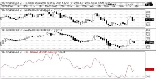 Ángel (Jubilado en el Foro) nos contó en la última kedada una novedosa forma de presentar los indicadores que puede suponer un nuevo camino de investigación y que seguro que a más de uno le puede resultar interesante. Se trata de mostrar los indicadores en formato Candlestick (con su máximo, mínimo y cierre) o, rizando el rizo, en formato Heiken Ashi.
