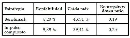 También examinamos estrategias durante todo el período de backtesting y examinamos el desempeño de la estrategia de impulso compuesto.