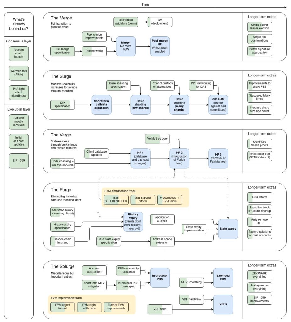 En el siguiente diagrama publicado por Vitalik Buterin en su cuenta de Twitter podéis ver en detalle las tareas que se realizarán en cada una de estas fases: