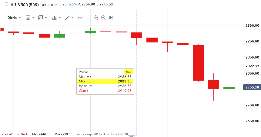 Ví el 2887.88 en la plataforma de IG; sacando el gráfico, poniendo el ratón encima de la barra, y dice "Mínimo 2887.88".