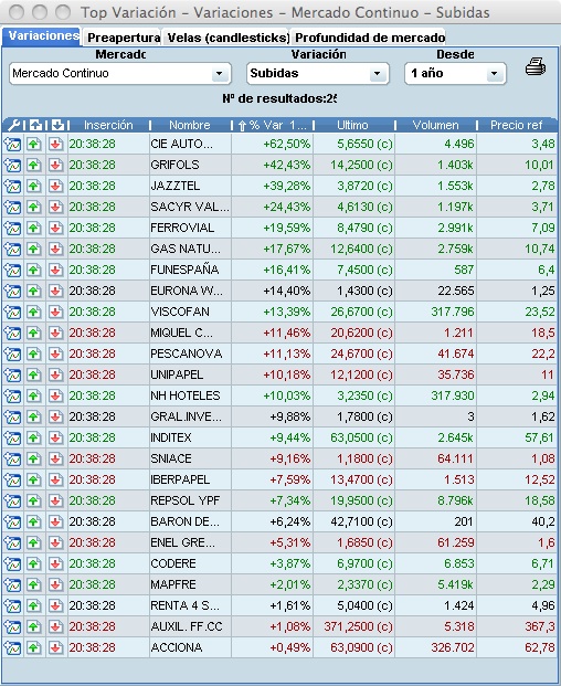 Pero te sugiero esto: podrías seguir el siguiente camino: Mostrar/Top Variación 1, y entonces te saldrá está pantalla (si pinchas la imagen la verás mas grande):
