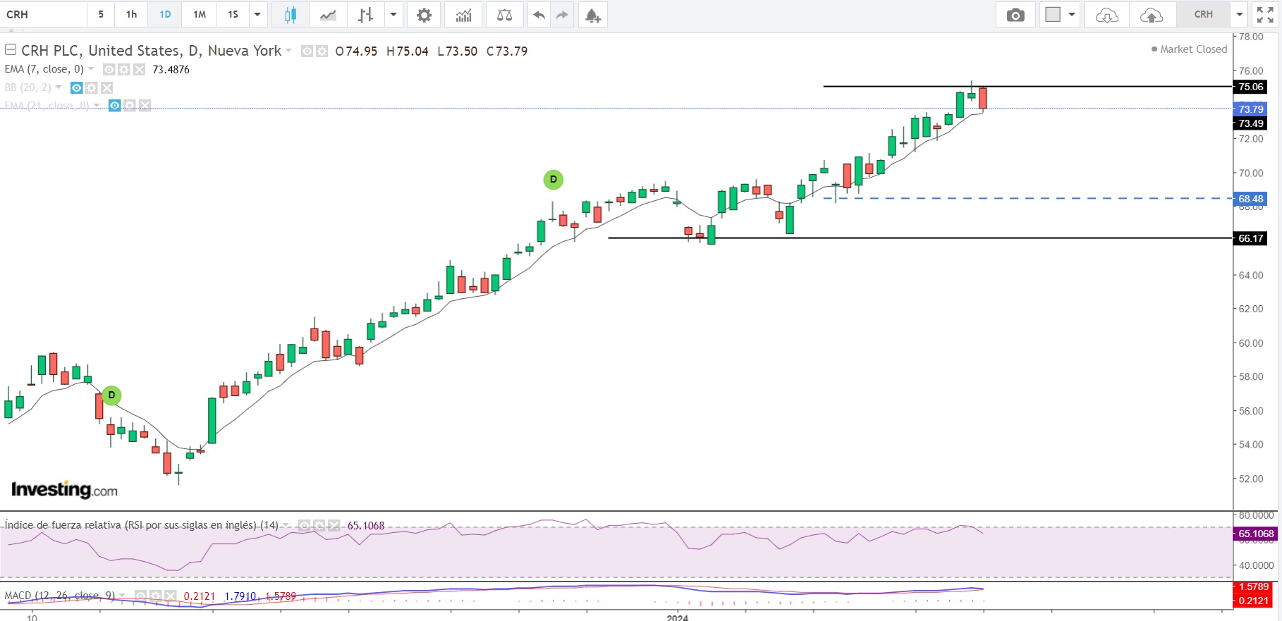 En principio parece estar bajo control, pongo un aviso para el precio en 79 y otro en 71 y a esperar. Si no suenan mejor y el fin de semana próximo la miraré y pondré la evolución. Si suena alguno y hago alguna modificación la pondré ese día.