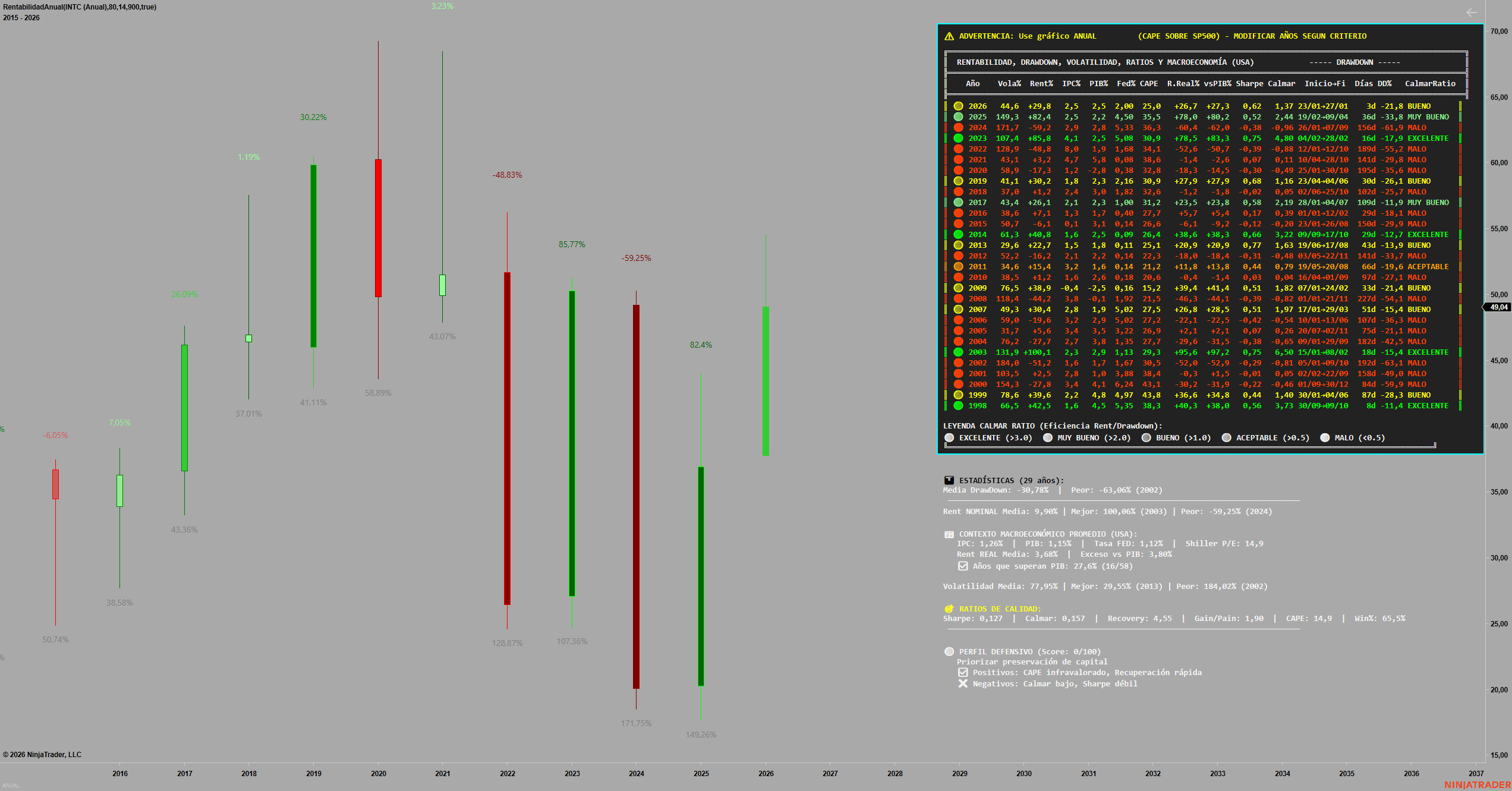 El histórico nos dice que entre este año y el pasado lleva casi un 120% de rentabilidad; nunca había tenido tanta rentabilidad en 26 años seguida y que en esta zona el precio lleva años intentando superar. Al menos el año pasado hizo buen colchón.