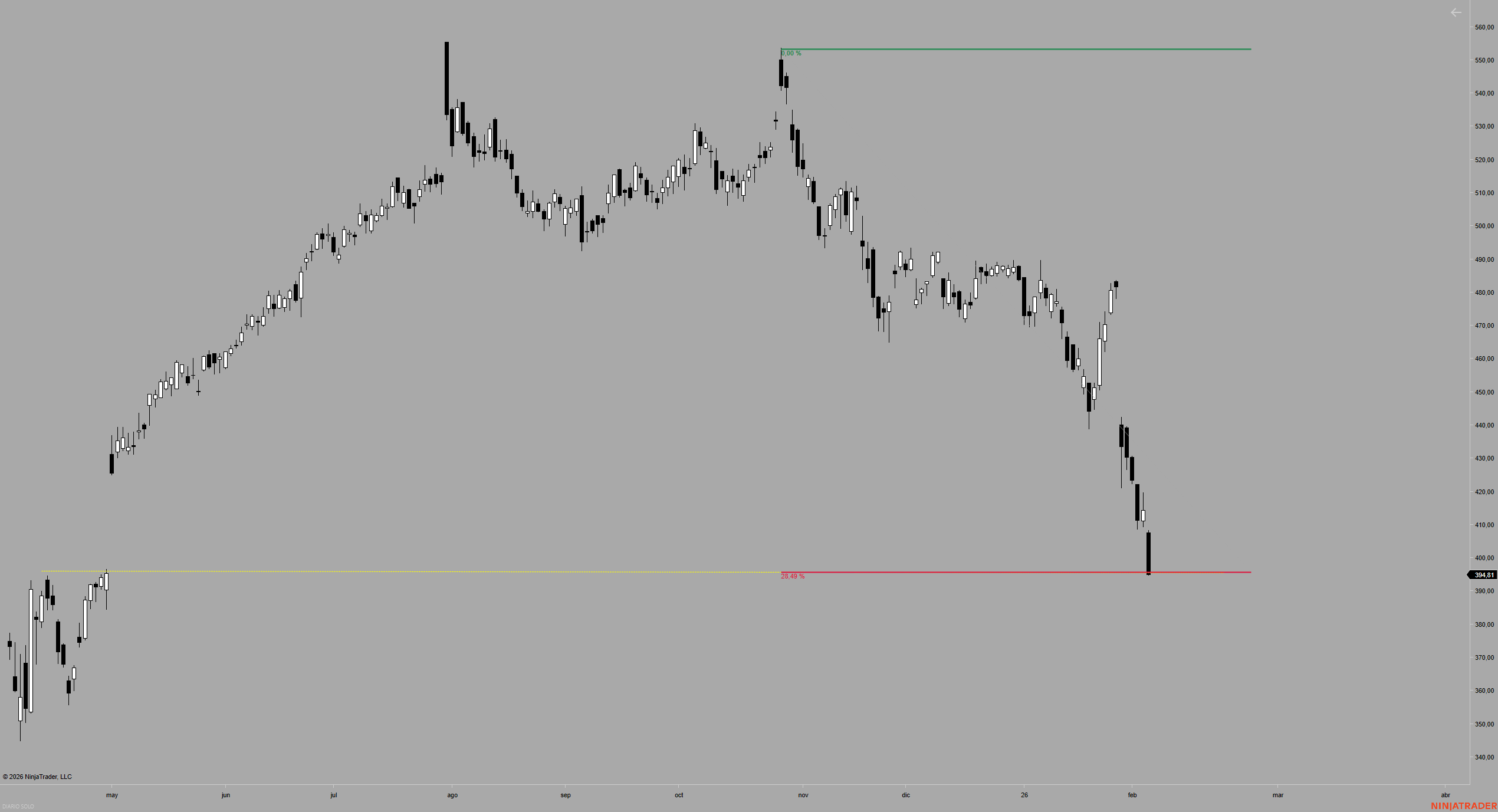 Hola:PAULOKO escribió: 31 Ene 2026 16:01 Tras earnings consiguiente batacazo y como no estaba cubierto (el pronóstico no se desvió mucho de lo sucedido) el día 26 rolo put57,5 vto. mayo a put57,5 vto. julio.
