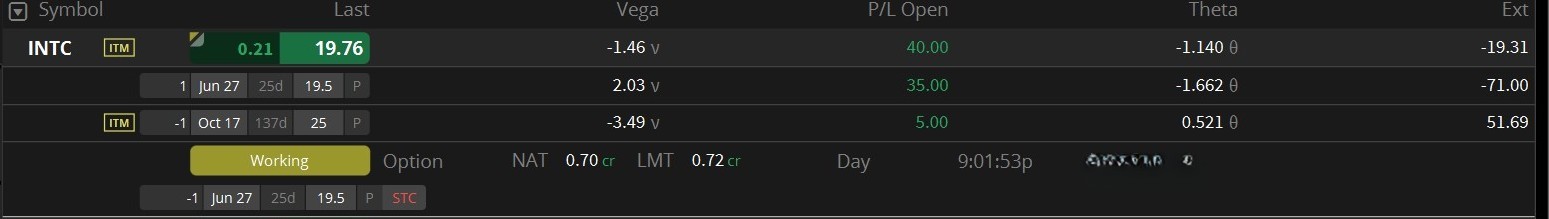 Ayer al inicio de sesión compré la otra put19 en INTC. Me salió algo mas barata de lo que calculé en la simulación.