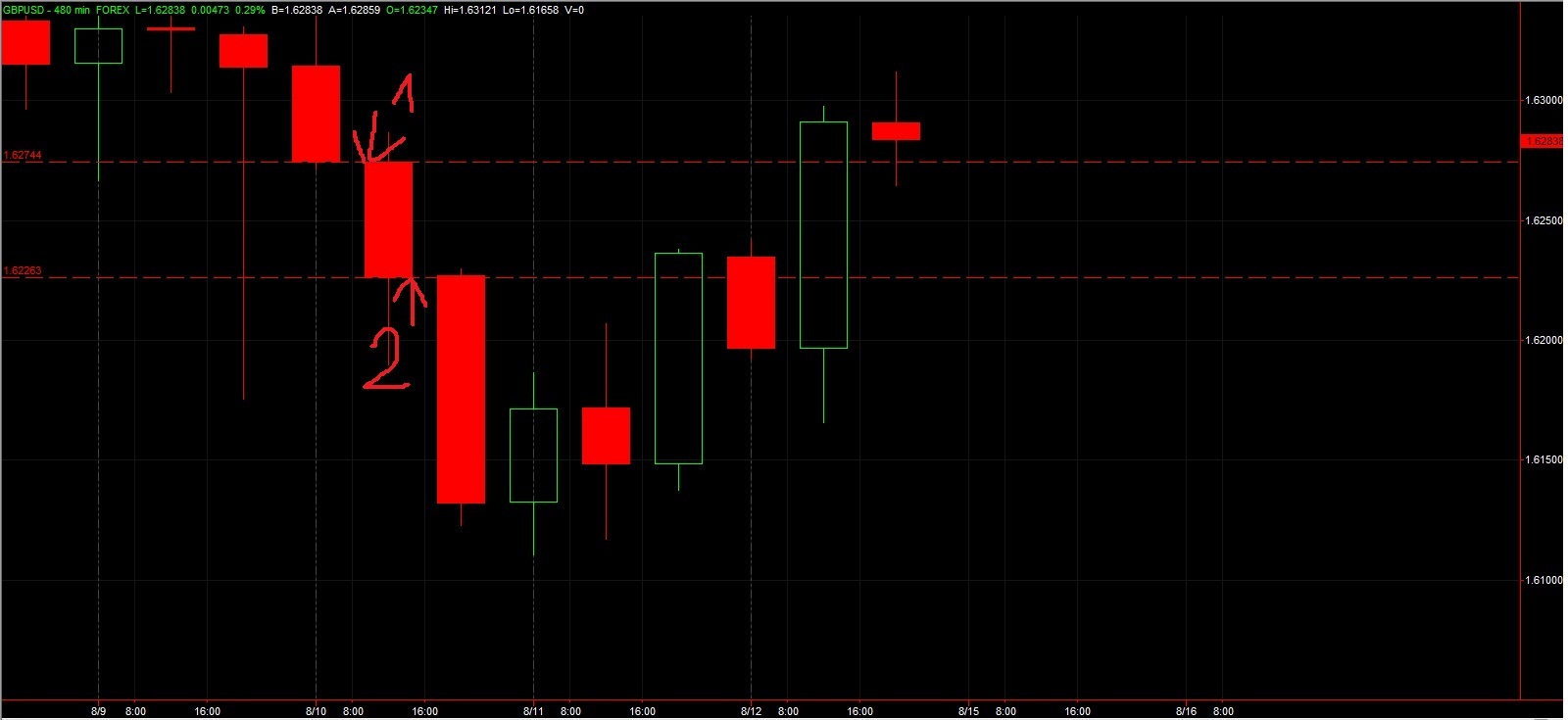 Pasando bajo más bajo ( flecha 2), el nivel de la línea azul, marcado con la flecha blanca, el precio está en la tendencia bajista.