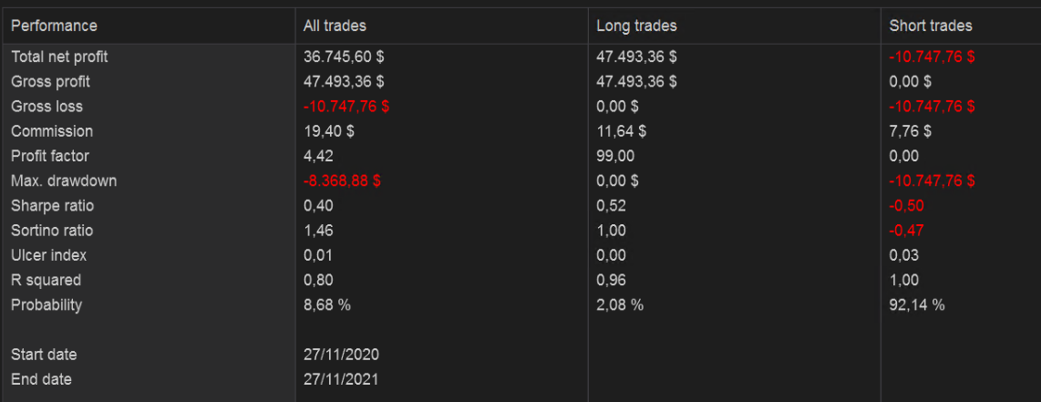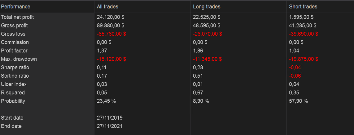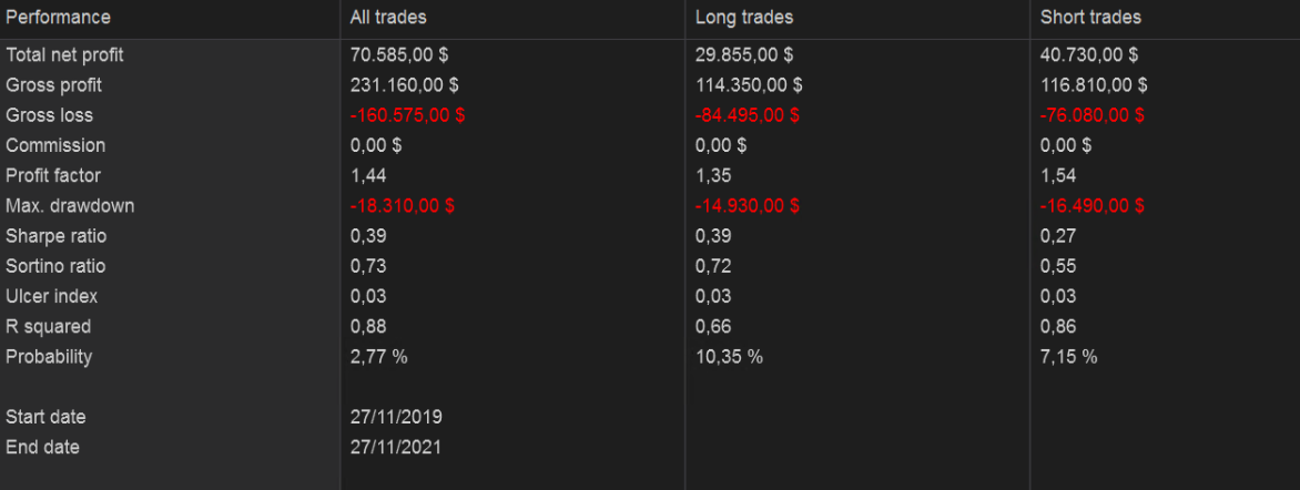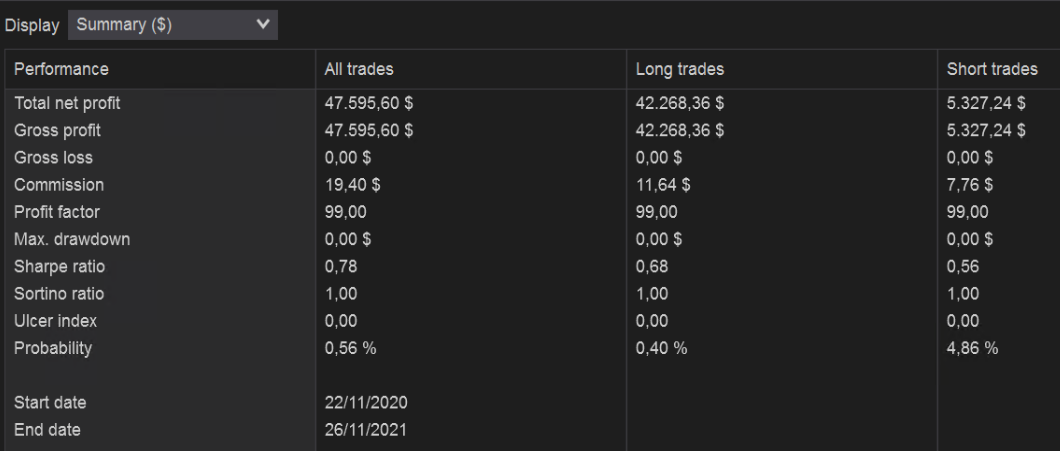 Hola Caminandosolo, gracias por compartir, muy interesantes. En particular, parece que en gráfico diario funciona estupendamente, aunque me mosquea que en un solo año no tenga pérdidas en ni un solo trade. ¿Podrías ampliar el histórico para ver qué tal se le han dado otros tipos de mercado como la crisis de 2008?