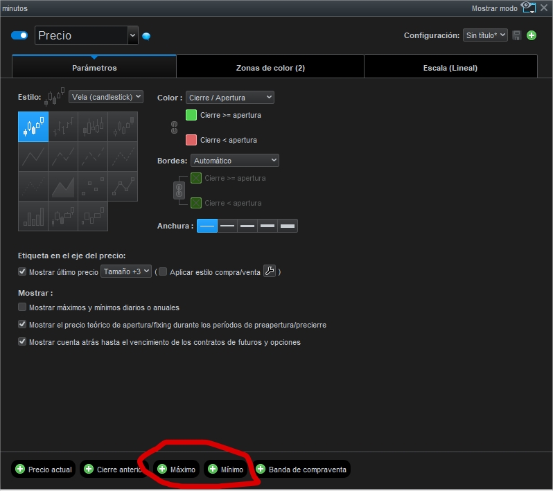 El tema de colorear lo hace PRT también en el menú de opciones, tanto como agregar líneas horizontales, más indicadores etc,