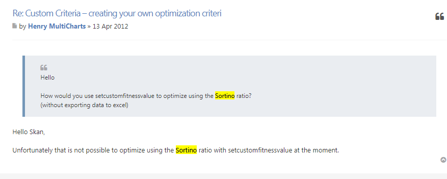 ¿Alguien sabe como usar el ratio de Sortino (o el Omega) en la optimización de una estrategia de Trading con Multicharts?