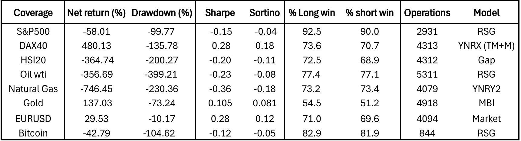 Aunque puedan ser utilizadas como estrategias, cosa que no se puede hacer con los modelos tradicionales RSG, MBI, YRNX o YNRY, no son estrategias al uso, ya que analizados 11 activos de total relevancia y de todas las categorías de activos (índices, commodities, renta fija, divisas y criptoactivos). En todos ellos se puede ver los mismos patrones, con mayor o menor claridad (se hicieron rápido los gráficas)