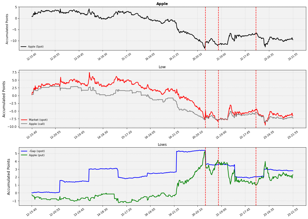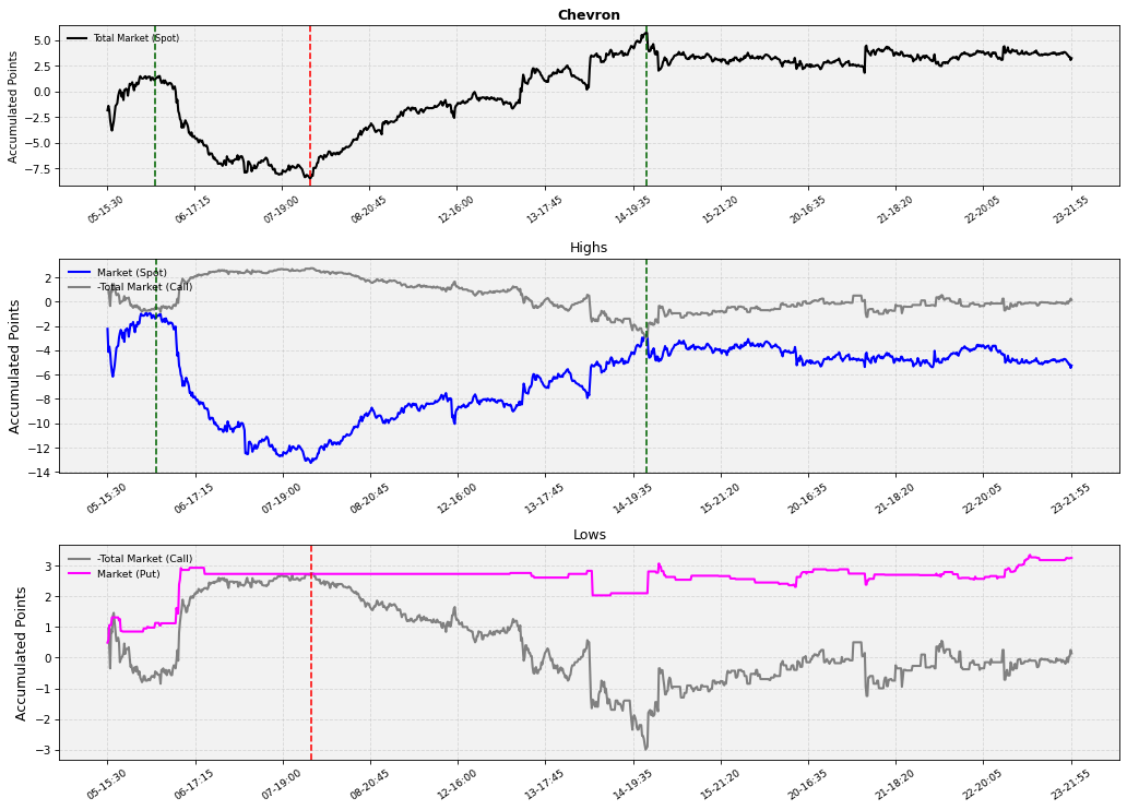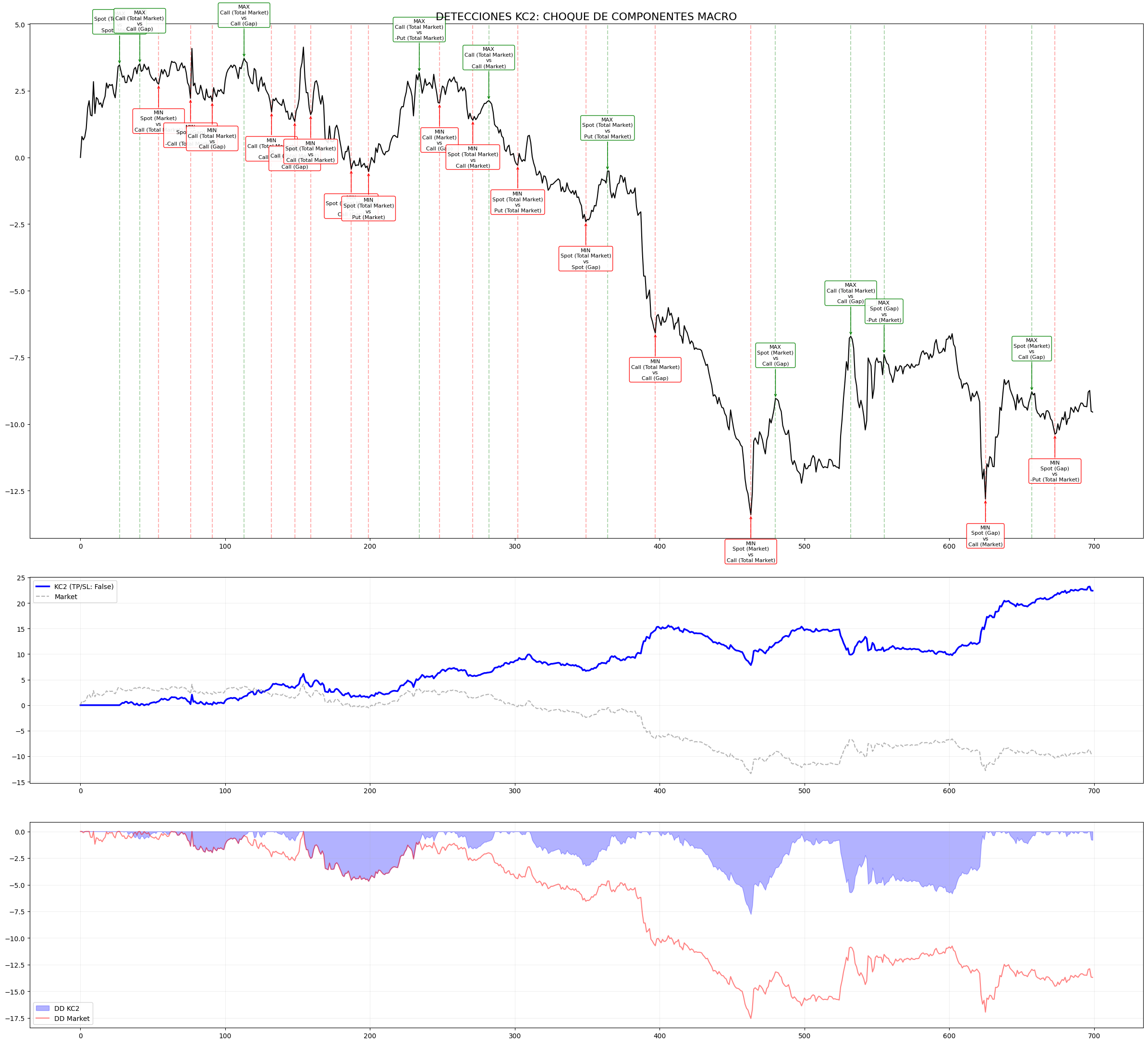 Lo voy a escribir ahora, pero ningún máximo o mínimo detectado se produce si solo se grafica los componentes Total Market del spot, call y put, hace falta graficar el componente Gap y Market, y si las velas de las opciones call y put no lo tienen, solo van a existir gaps, que equivalen al Total Market