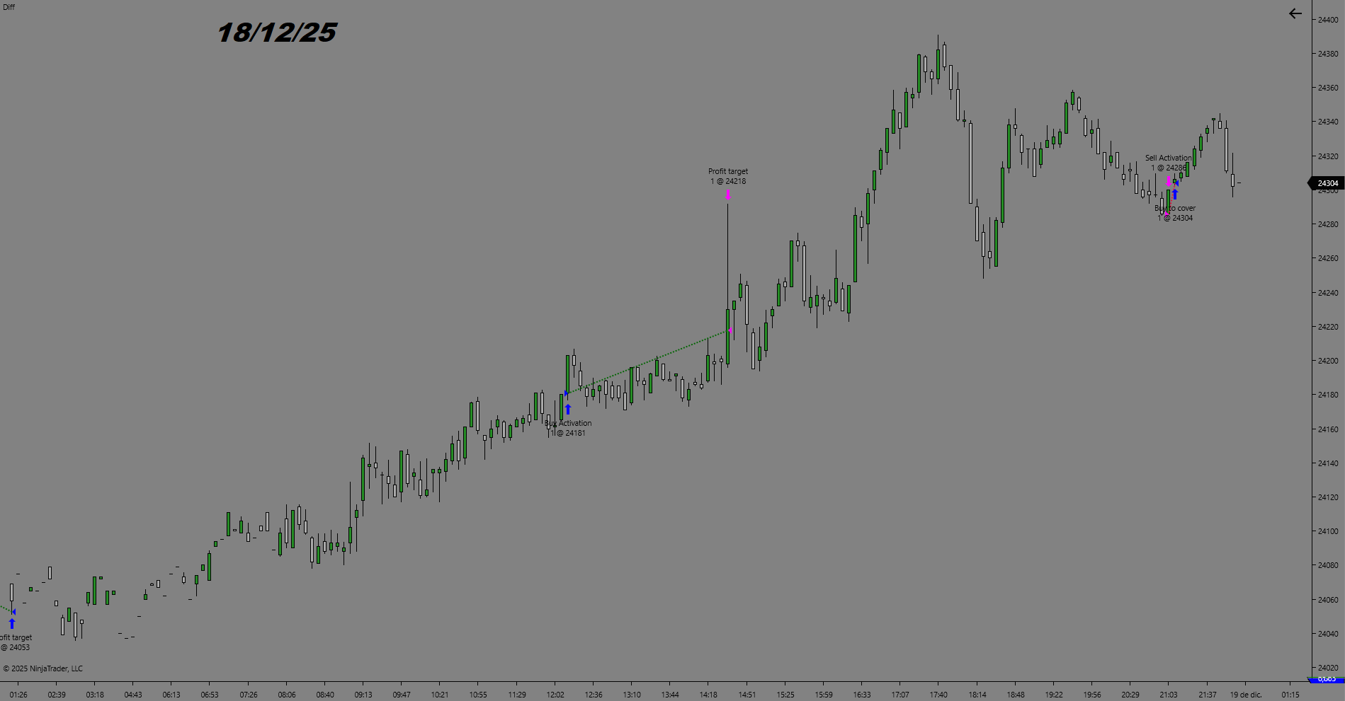 Estrategia automática Diff, sesión FDAX días 3/12/25 y 4/12/25