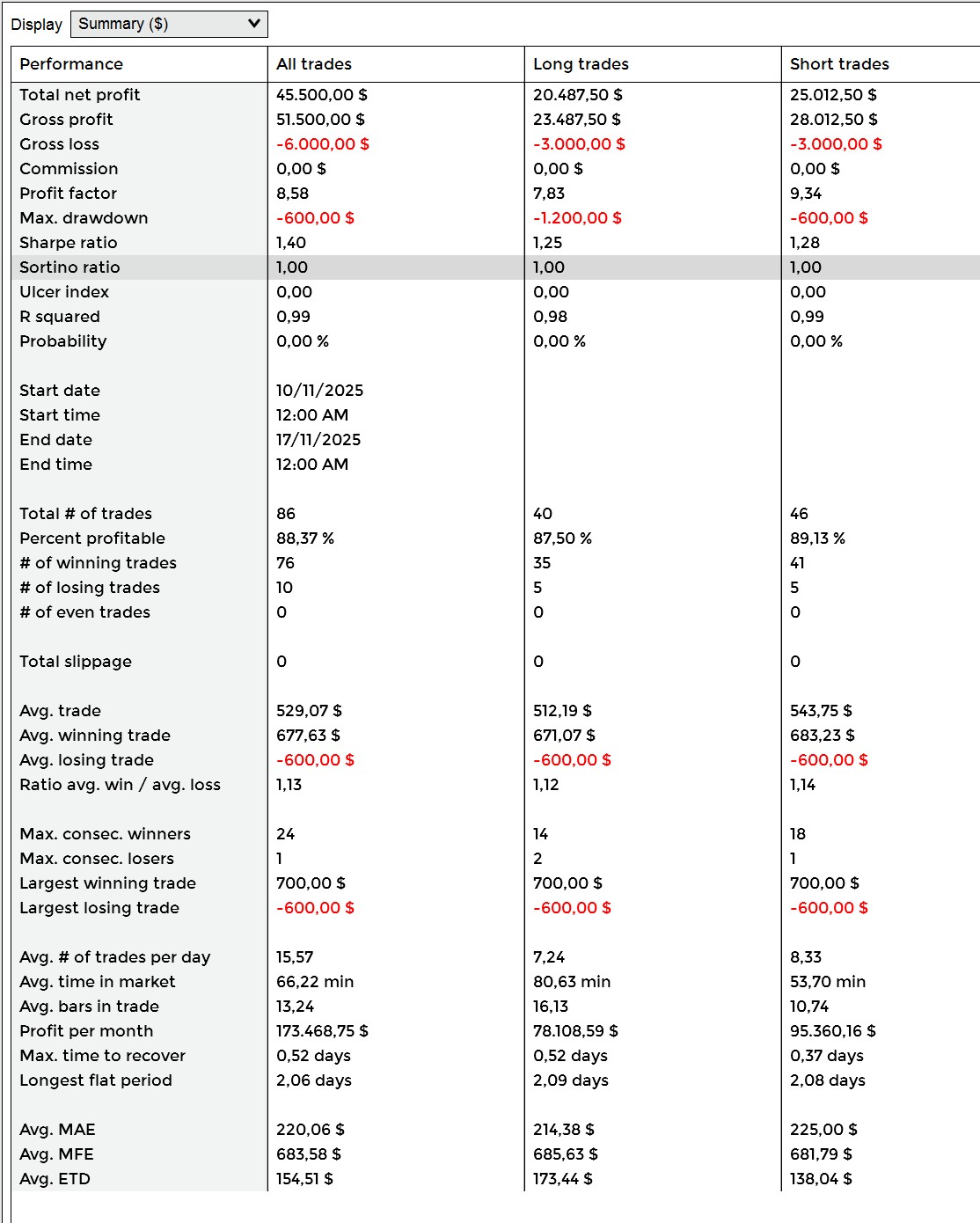 Aquí subo un backtesting que es aún mejor. Pero confieso que es fake. Es un aviso a navegantes para demostrar que no hay que creerse backtestings ni pantallazos. Que lo único que vale es un trackrecord en cuenta real y que a muy poca gente verás publicar.