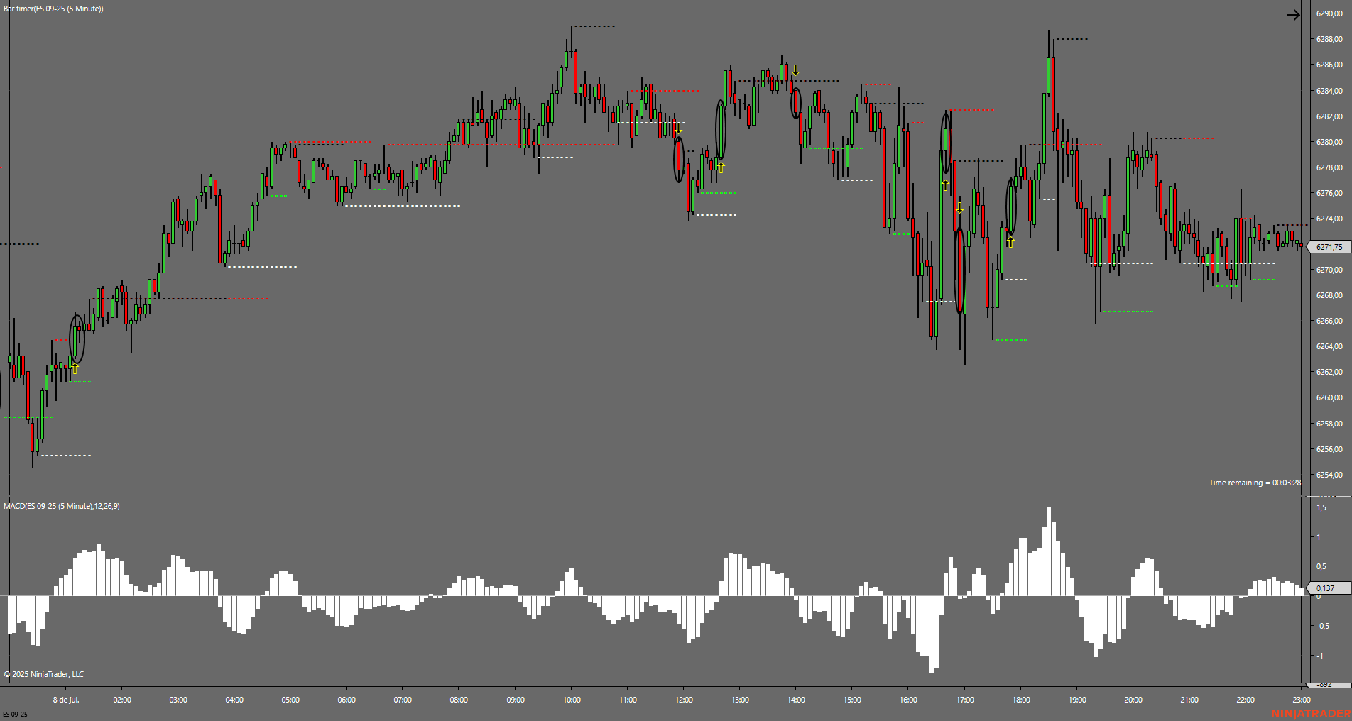 Como comenté en el primer post, vamos a comparar una sesión de mercado con un TF (cualquiera), en este caso uno de 5 minutos al azar, aunque se puede poner cualquier TF en comparación con un TF de marco matemático.