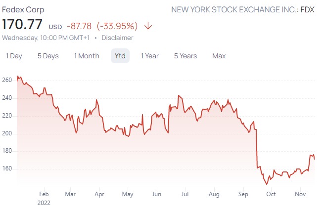 Desde un punto de vista con potencial de fuerte recuperación tenemos al Fedex, desde un -34%