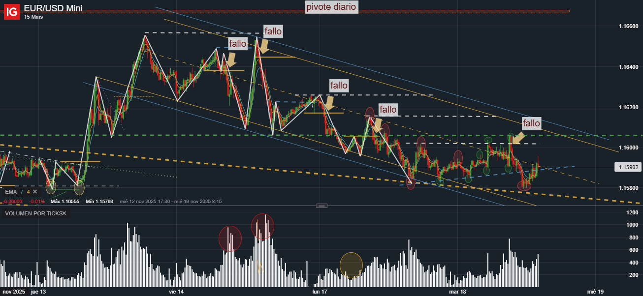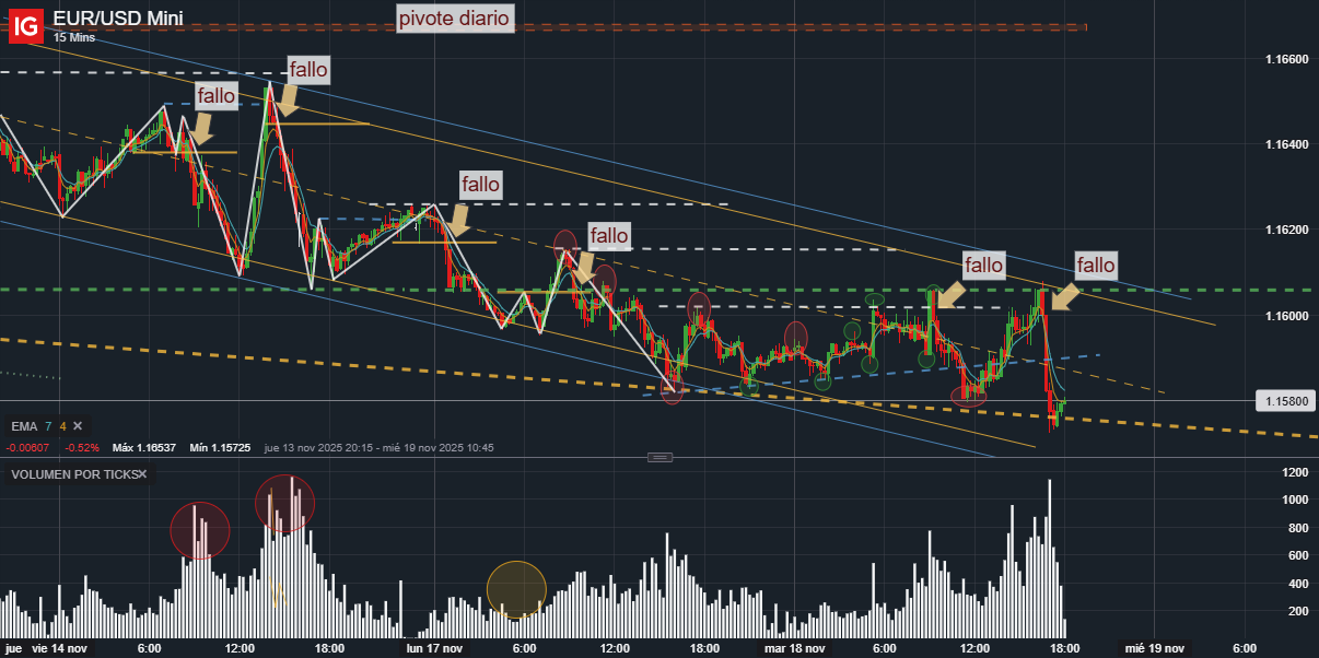 Solo comentar que la zona reactiva dinámica por desviación típica con los datos de esa tendencia, ayer cumplió como zona reactiva y el precio revirtió la dirección en esa banda dinámica de diario y 4 h con una reversal apoyada por acumulación de fuerza en TF bajos como 15m. Esto evidencia el valor que aporta el análisis multitimeframe.