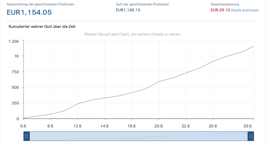 La estrategia en sí no cambia. Lo único que varía es el tamaño de la posición, y con ello la palanca sobre el conocimiento y la experiencia ya adquiridos. El pensador pequeño ve 1.000 € al mes y dice: “Eso no es suficiente”. El pensador grande reconoce en esa cifra la llave: hoy 1.000 €, mañana 2.500 €, más adelante 5.000 € o más. No es suerte ni azar, sino disciplina, paciencia y la mentalidad de largo plazo.
