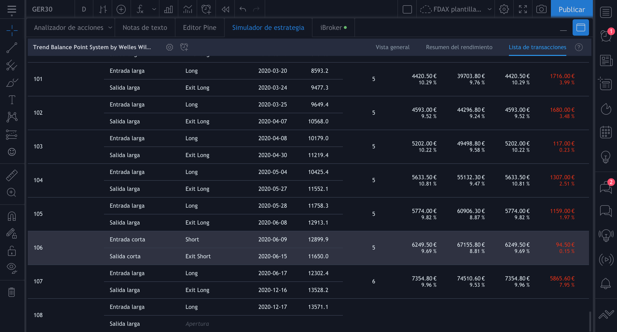 Con tradingview solo he hecho algunas operaciones de compra-venta y probar indicadores pero no se hacer ni backtest