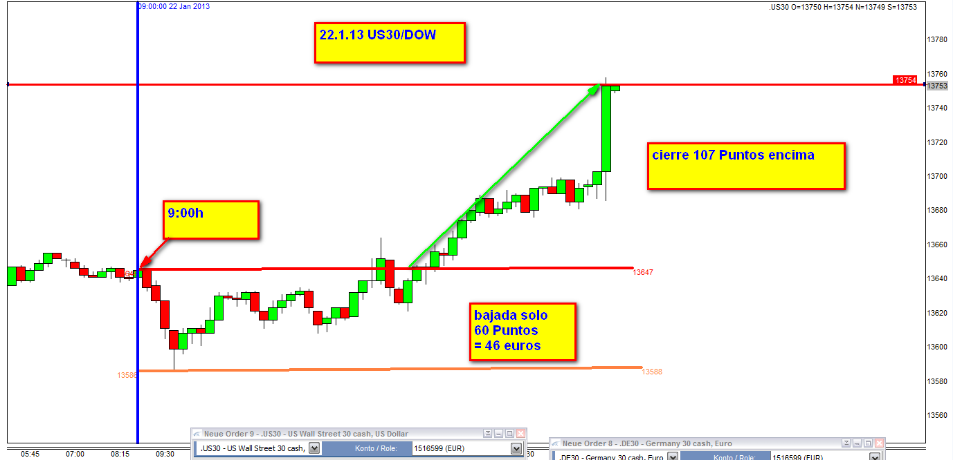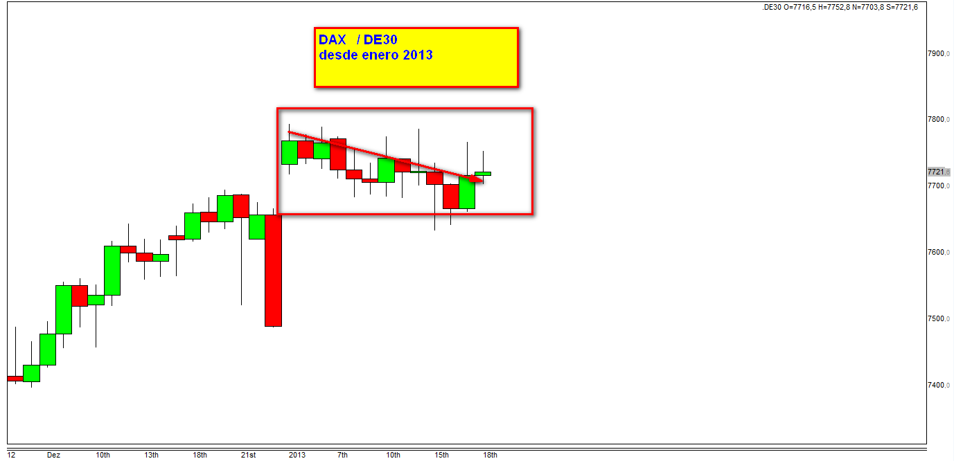 Lo contrario se presenta desde el enero 2013. El DAX pierde despues del hueco alzista unos 80 puntos mientras