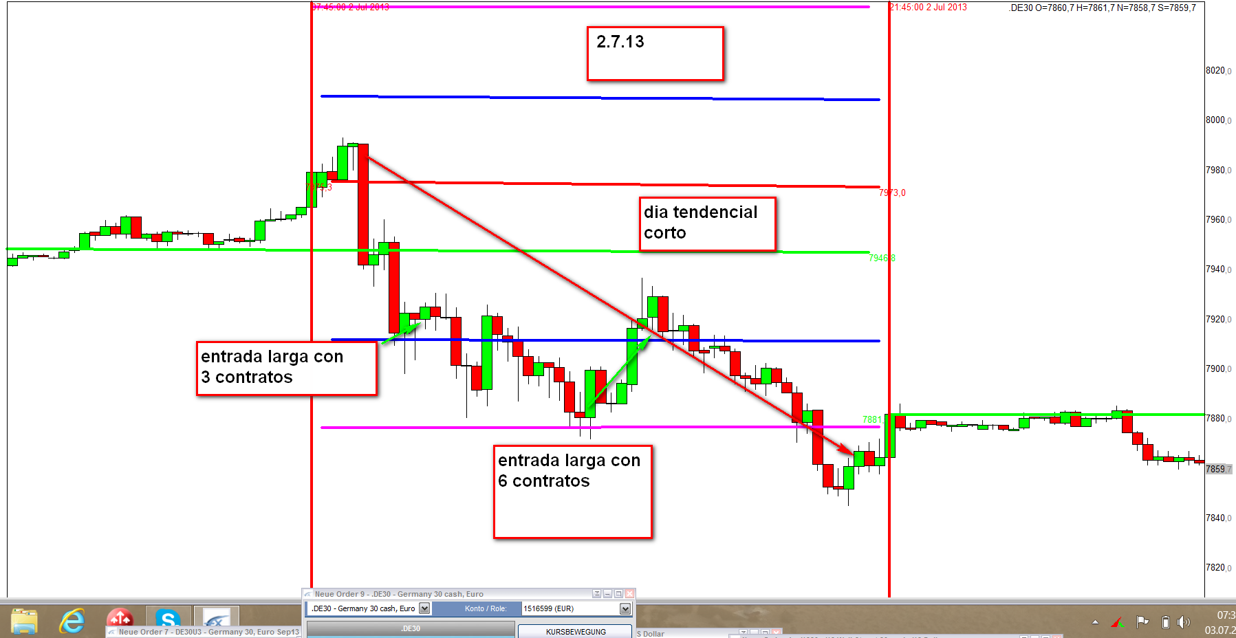 entrada con 6 contratos, de acuerdo con la FDAX-TRADING-STRATEGIE, por lo menos 200 puntos.
