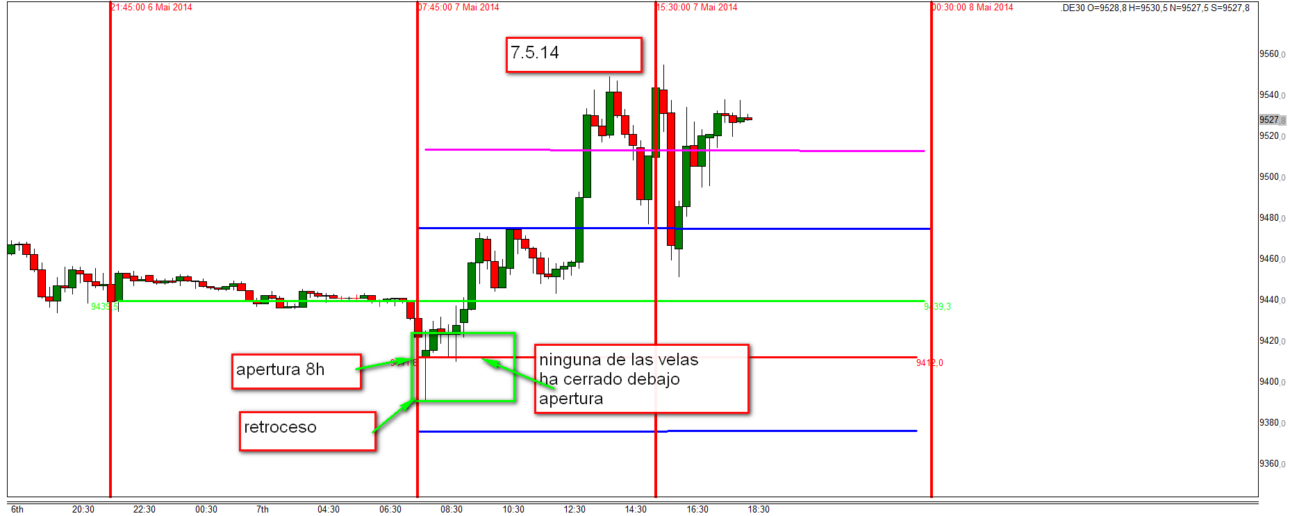 Mirad los graficos publicados ayer. Las mejores entradas largo son si ninguna de las primeras velas de 15 minutos
