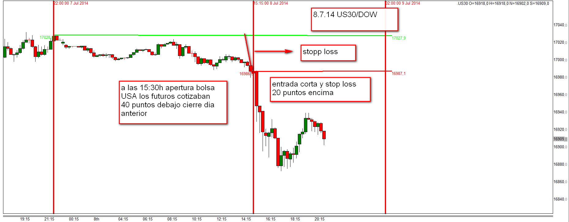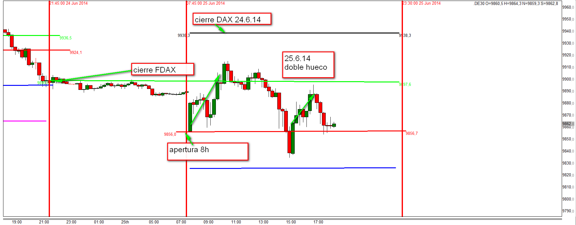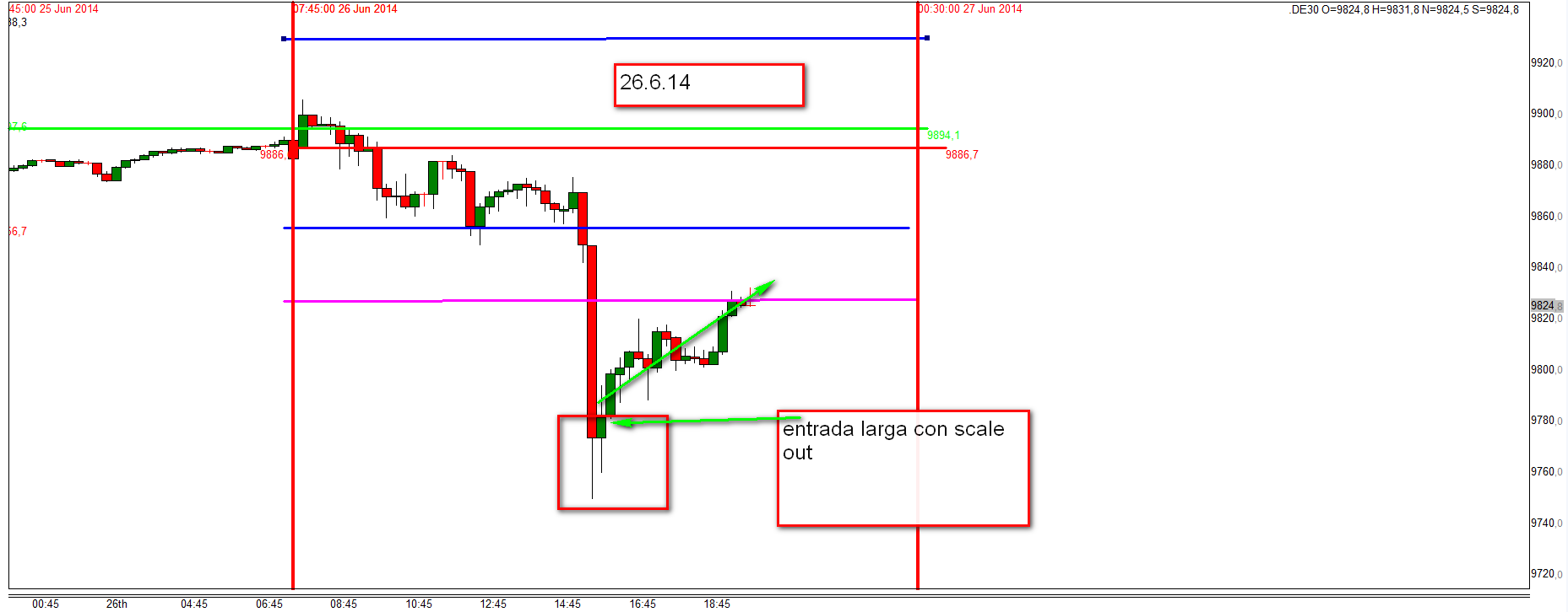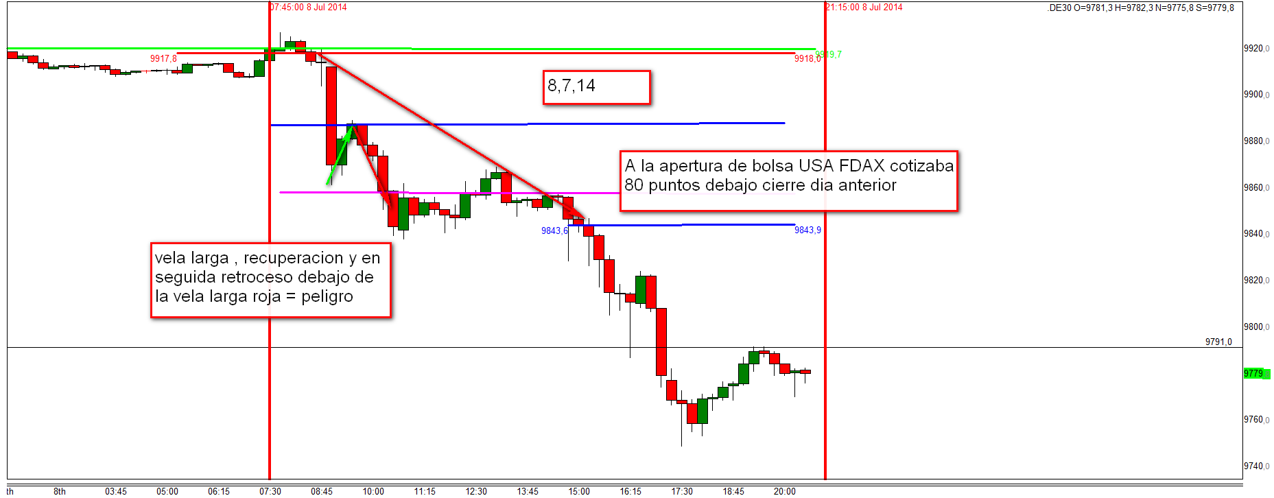 Se trata de la correlacion FDAX y futuros DOW ( DJIA FUT ). Es un Setup muy potente . Por regla general