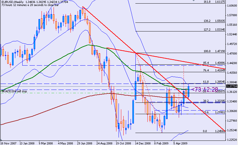 Para mi el EUR/USD esta en tendencia bajista desde septiembre de 2008 por lo que veo más probable que el precio se vaya por debajo de 1.28.