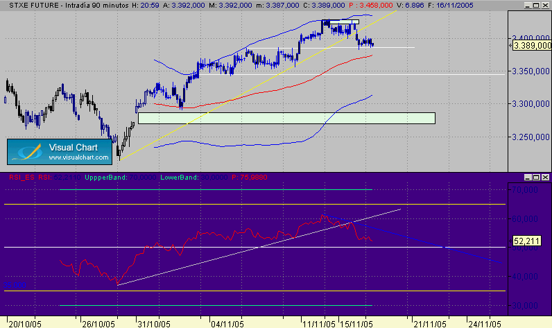 Hola Scalp, El Dax alcanzó sobradamente el objetivo de su hch invertido, pero el Stoxx no, el objetivo era 3453, puede no llegar a él por supuesto, pero el Dax esta haciendo un triangulo alcista con un objetivo altísimo 5205, lo haga rapido , despacio, o no lo llegue a hacer, y mientras tanto el Stoxx le espera en lateral con triágulo de continuación de tendencia un poco corrupto ya, si están consolidando mala cosa, pero también podrían romper para abajo. Sólo queria darte mi opinión por si se torcieran las cosas, aunque espero que no.