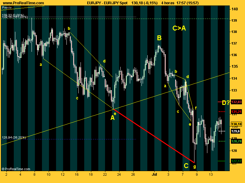 Pa mí el euro está lateral y aún le queda un último coletazo, pero vaya que tiene que hacer el tonto esta semana entera y parte de la otra, con lo que seguirá pacápallá pero no muy lejos y lo que un día bajo, lo subo al siguiente etc...o sea más de lo mismo jejeje...pa desquicio de los compradores de conos y disfrute de aquellos que pongan límites pa recoger beneficios y pasen de los stops jeje.