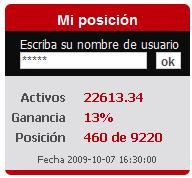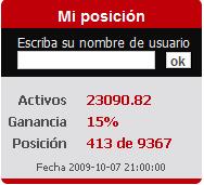Te llevas sorpresas cuando ves en que opera la gente, prácticmente le dan a todo, cada uno especializado en una cosa. Hubo un ganador semanal en el 1º concurso, el que no tení porshe, que le pegaba duro al CORN, SYBEAN y todos esos CFD's que replican a los activos del CBOT y sacaba unas rentabilidades impresionantes.