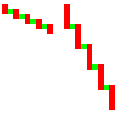 Y ahi estoy con mi razonamiento anterior, si eso es asi (que no lo es), no hay mas que apostar al cambio de color despues de la primera vela de media hora para ganar unos pipos limpiamente, puesto que matematicamente el cambio de color nos dara mas pipos que el apostar al mismo color.