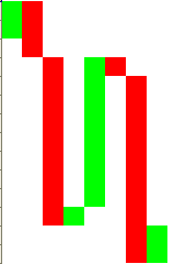 Con lo que razonablemente se deduce que...un 50% de las velas horarias estaran compuestas de dos velas del mismo color (vv rr), y el otro 50% estaran compuestas con velas de diferente color (vr rv), y creo que no hay mas variaciones posibles con dos colores y dos velas...