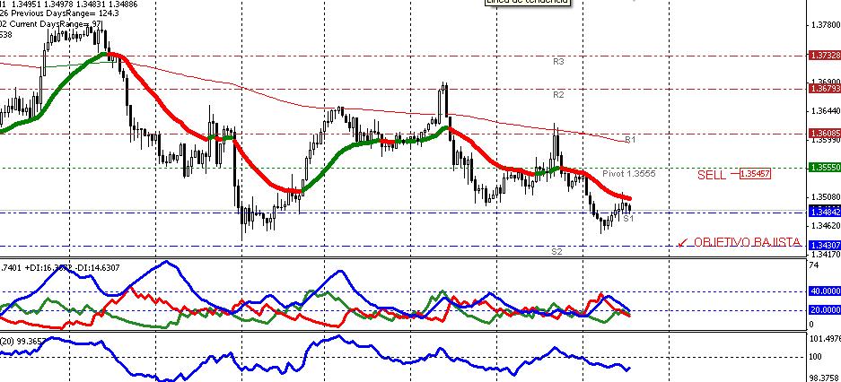 Ayer se formó un nuevo tramo bajista desde el 1.3683 hasta el 1.3433 marcando ligeramente nuevos mínimos anuales.